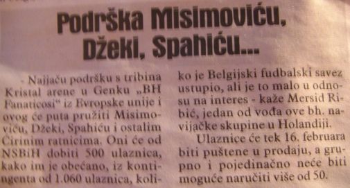 U prethodnom broju “Avazu” je (ne) namjerno izasao clanak u kojem se navodi da ce navodno nama, BHFanaticosima, biti obezbjedjeno 500 ulaznica od ovog shugavog, usljivog i kriminalnog N/FSBiH.